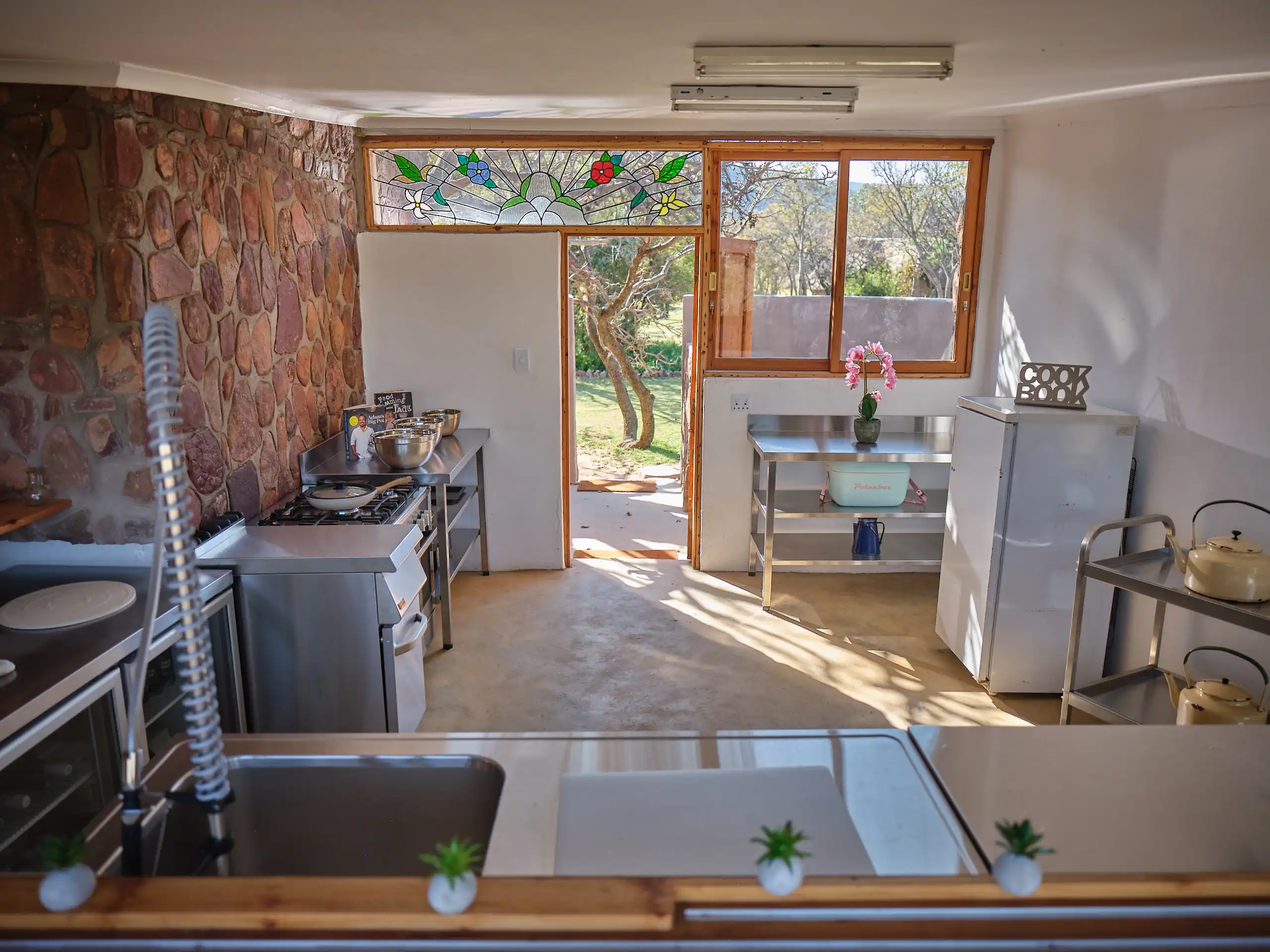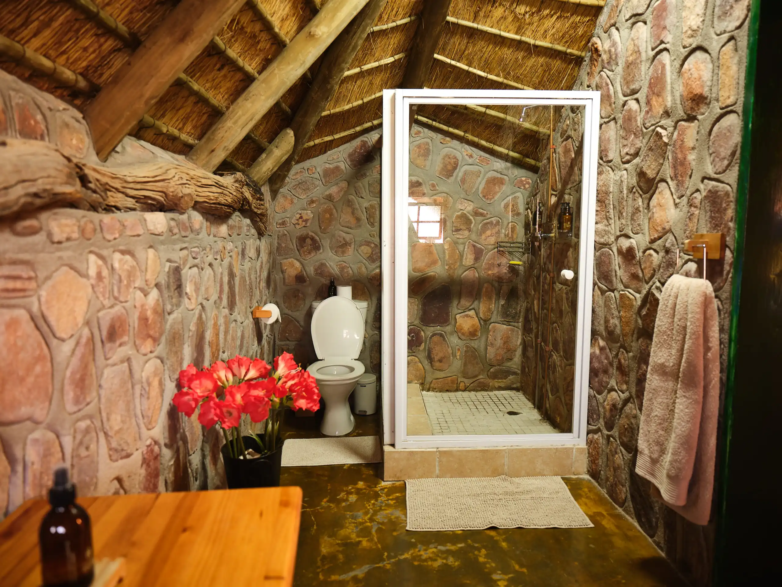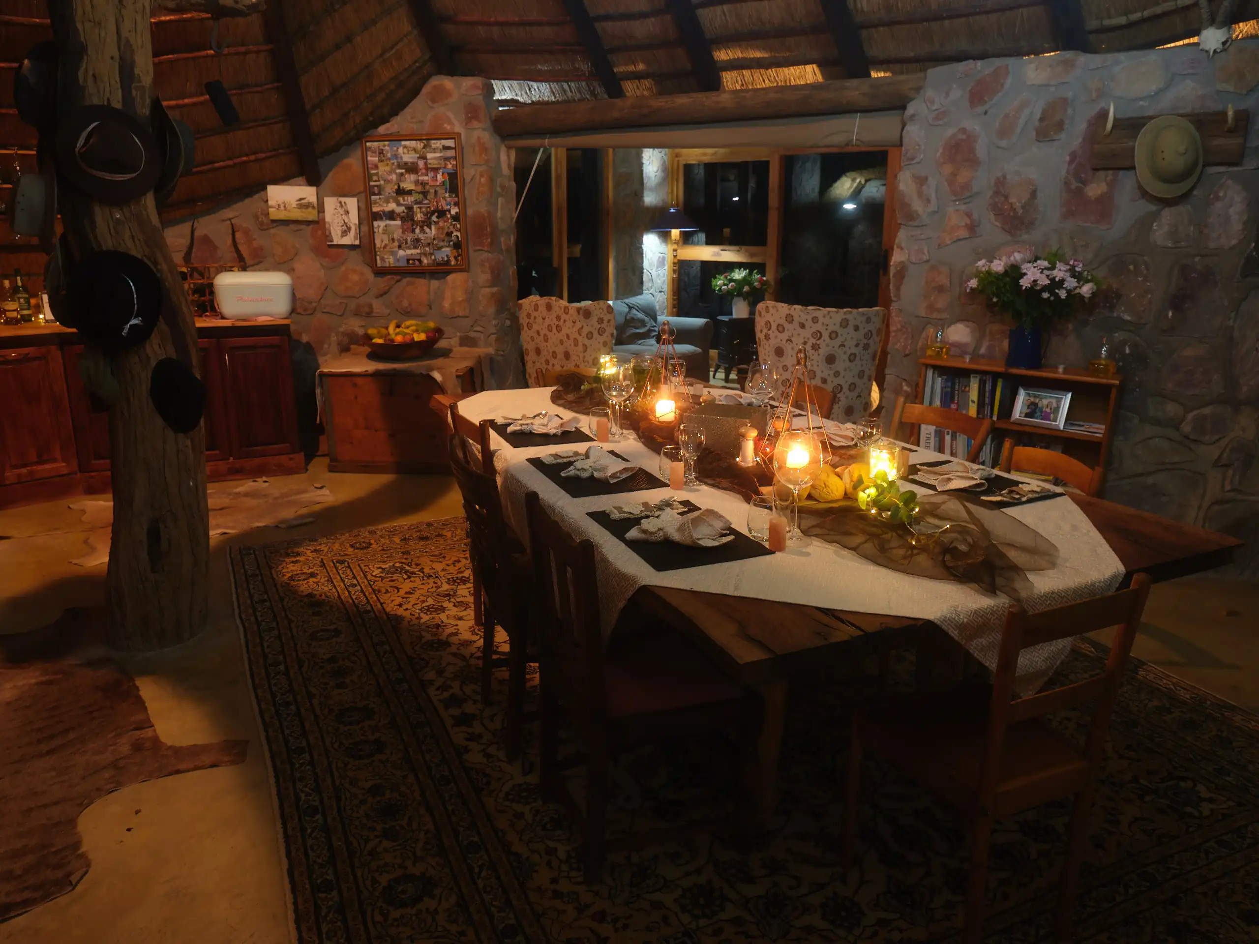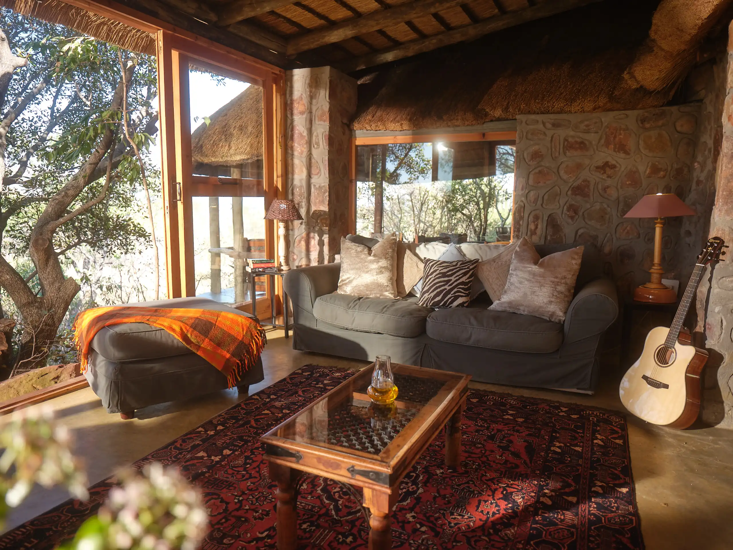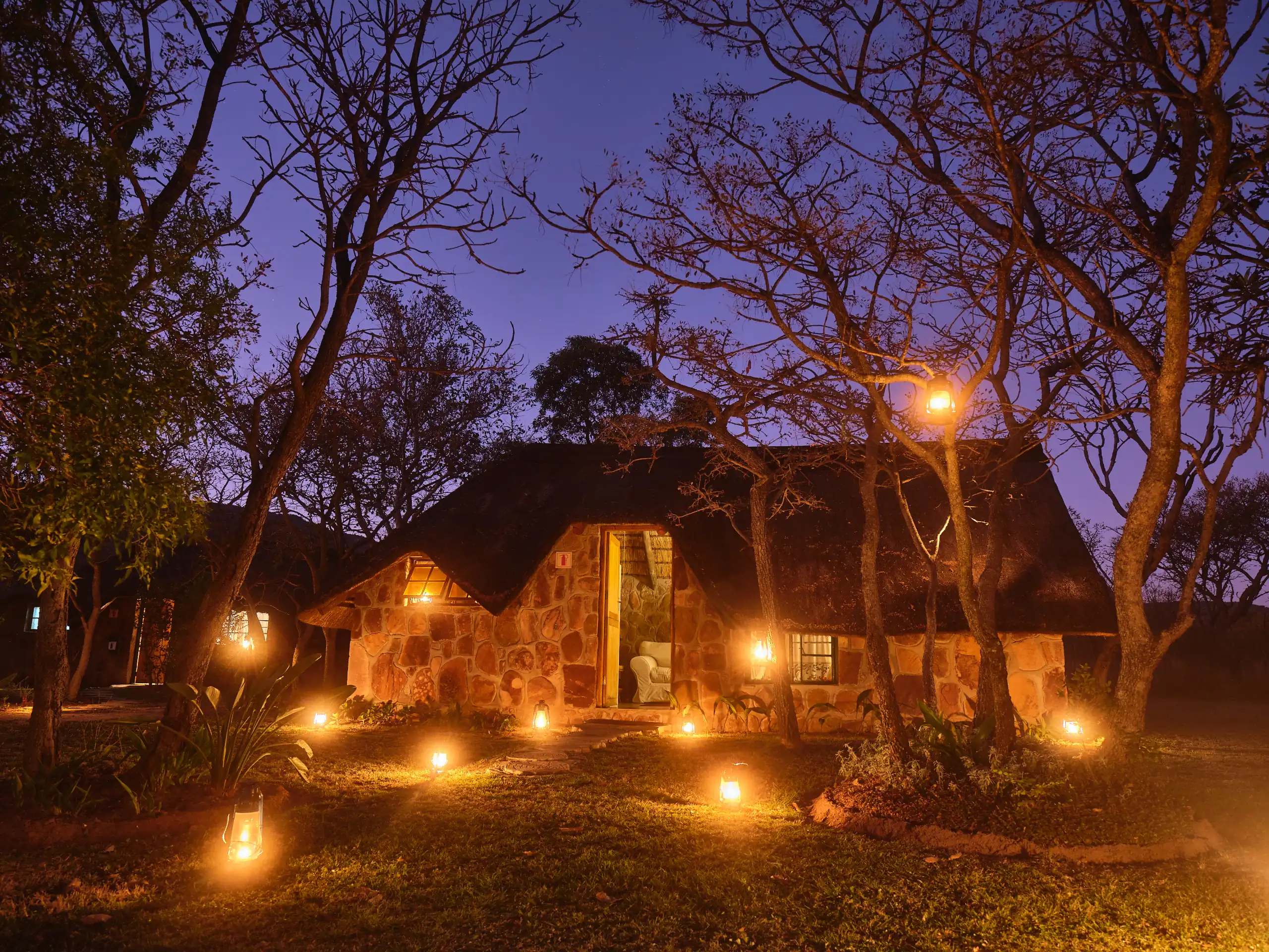 - Amenities: Bath and swimming towels provided, Ceiling fans in each room, Complimentary coffee and tea station, Double or twin bed options with provided linens, En-suite bathrooms with amenities, Fully equipped self-catering kitchen, Private lodge access for all bookings, Reliable back-up power system